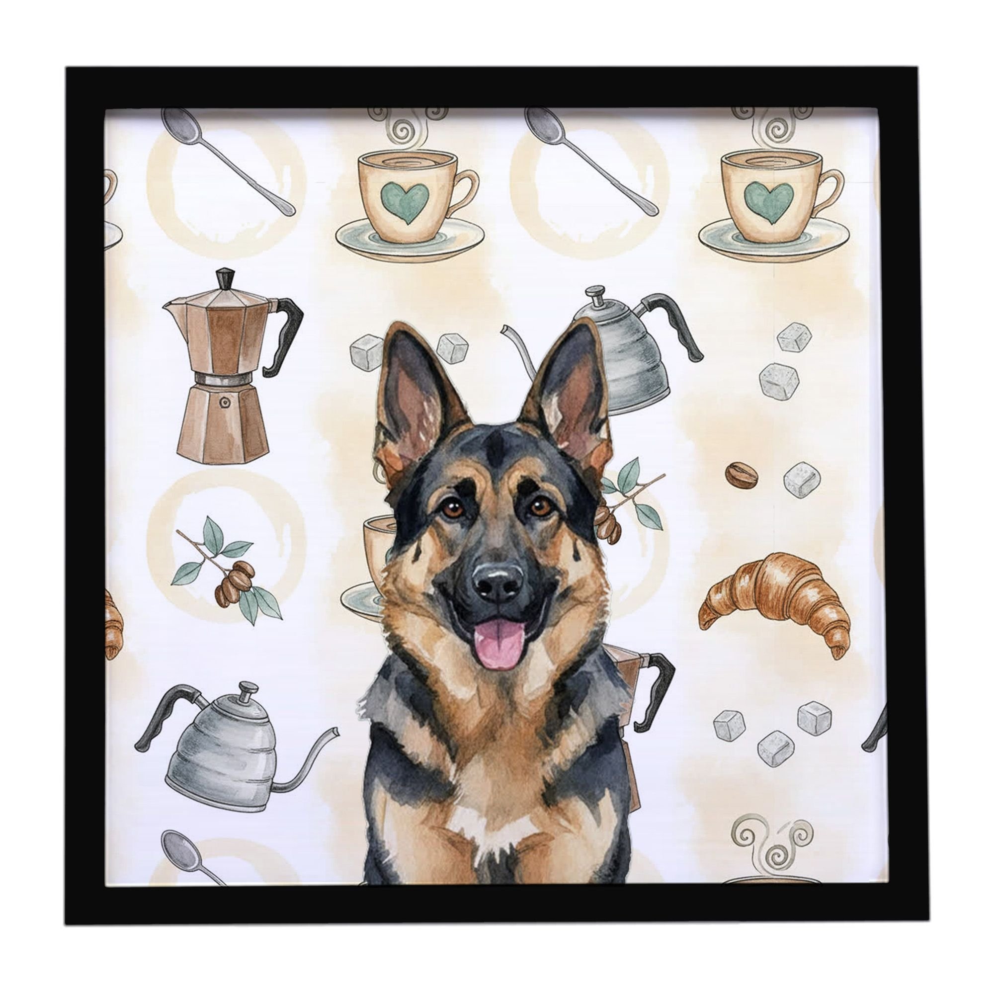 German Shepherd Coffee Bar Framed Metal Print Bathroom, Kitchen, Office, Home Decor Wall Art Ready to Hang, Square, 8X8