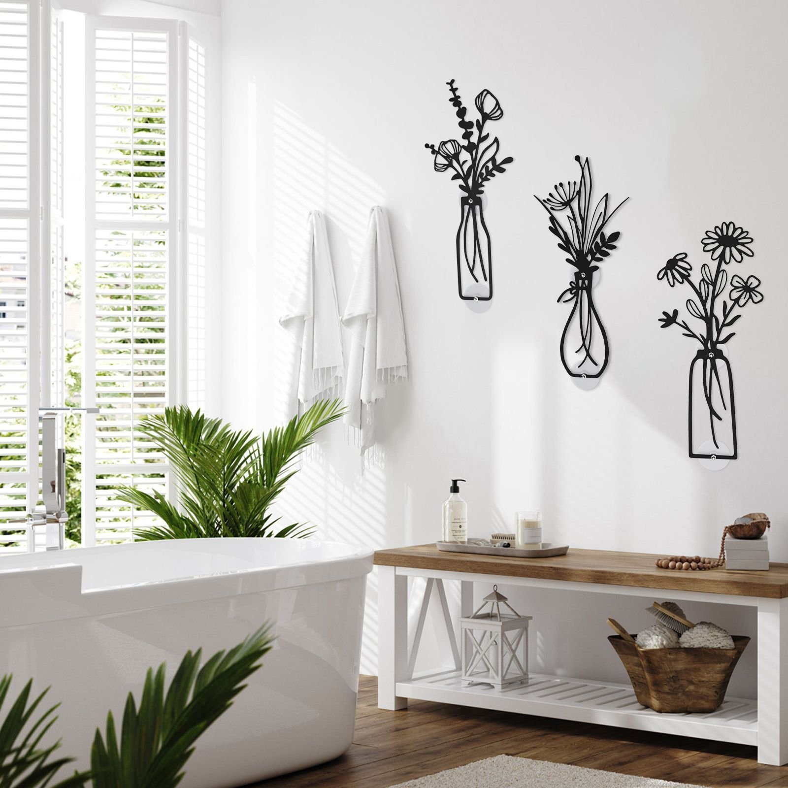 Easy Hanging: The lightweight 3-piece metal floral set installs effortlessly. No drilling required—simply apply adhesive for hassle-free mounting.