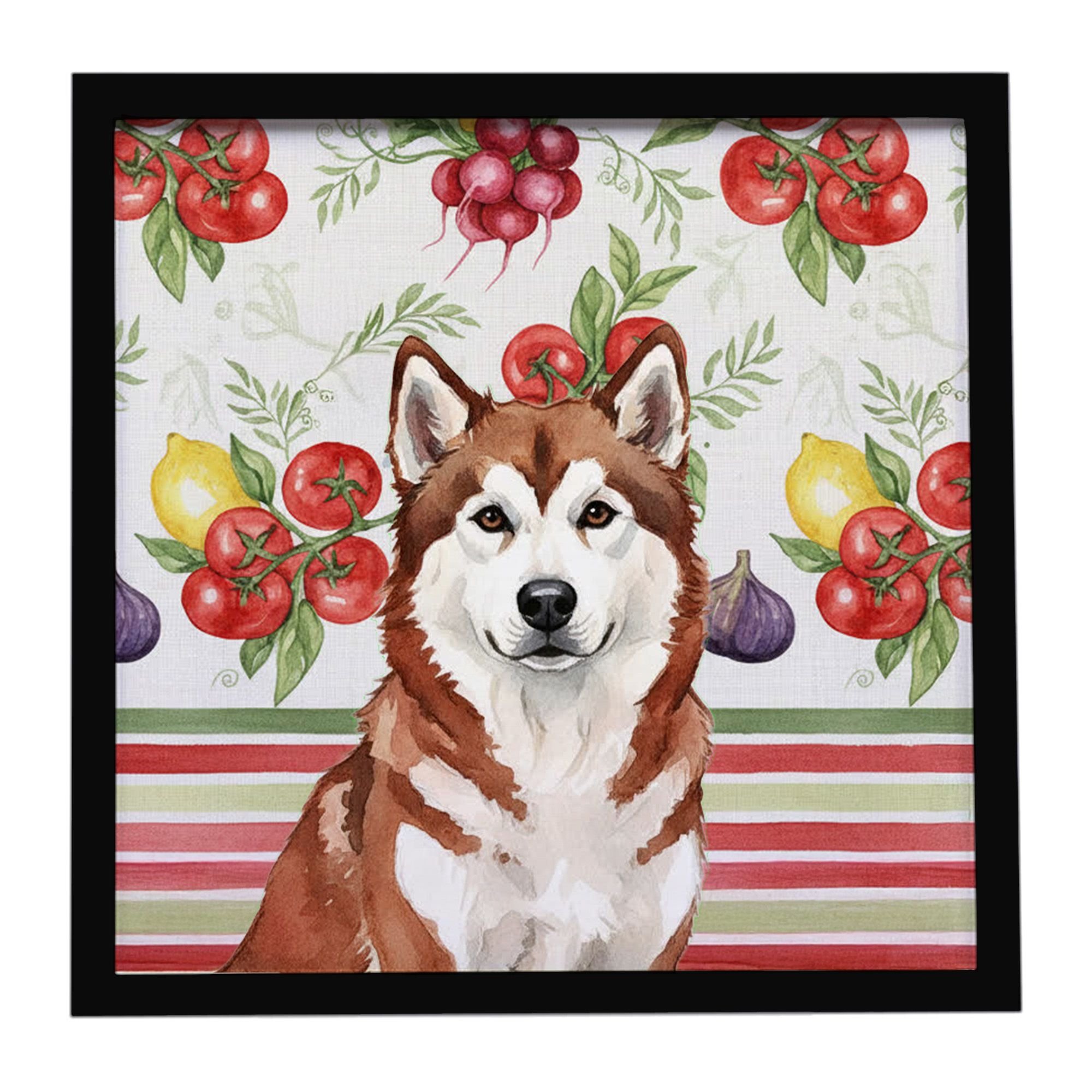 Red and White Alaskan Malamute Vegetables Framed Metal Print Bathroom, Kitchen, Office, Home Decor Wall Art Ready to Hang, Square, 8X8
