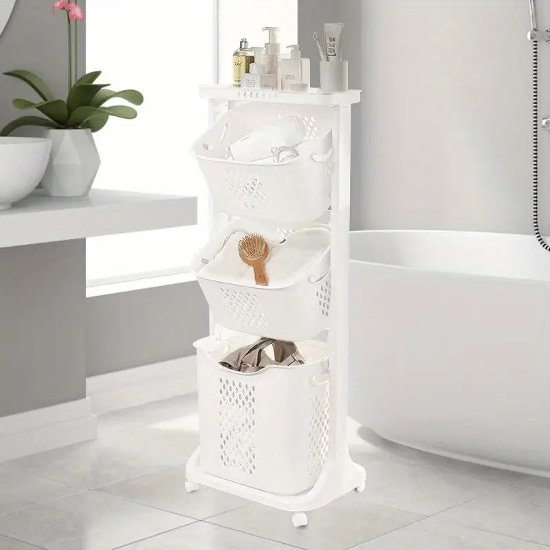 1.Large Capacity 3-Tier Design – Provides ample space for sorting and storing clothes, towels, and laundry essentials efficiently.
