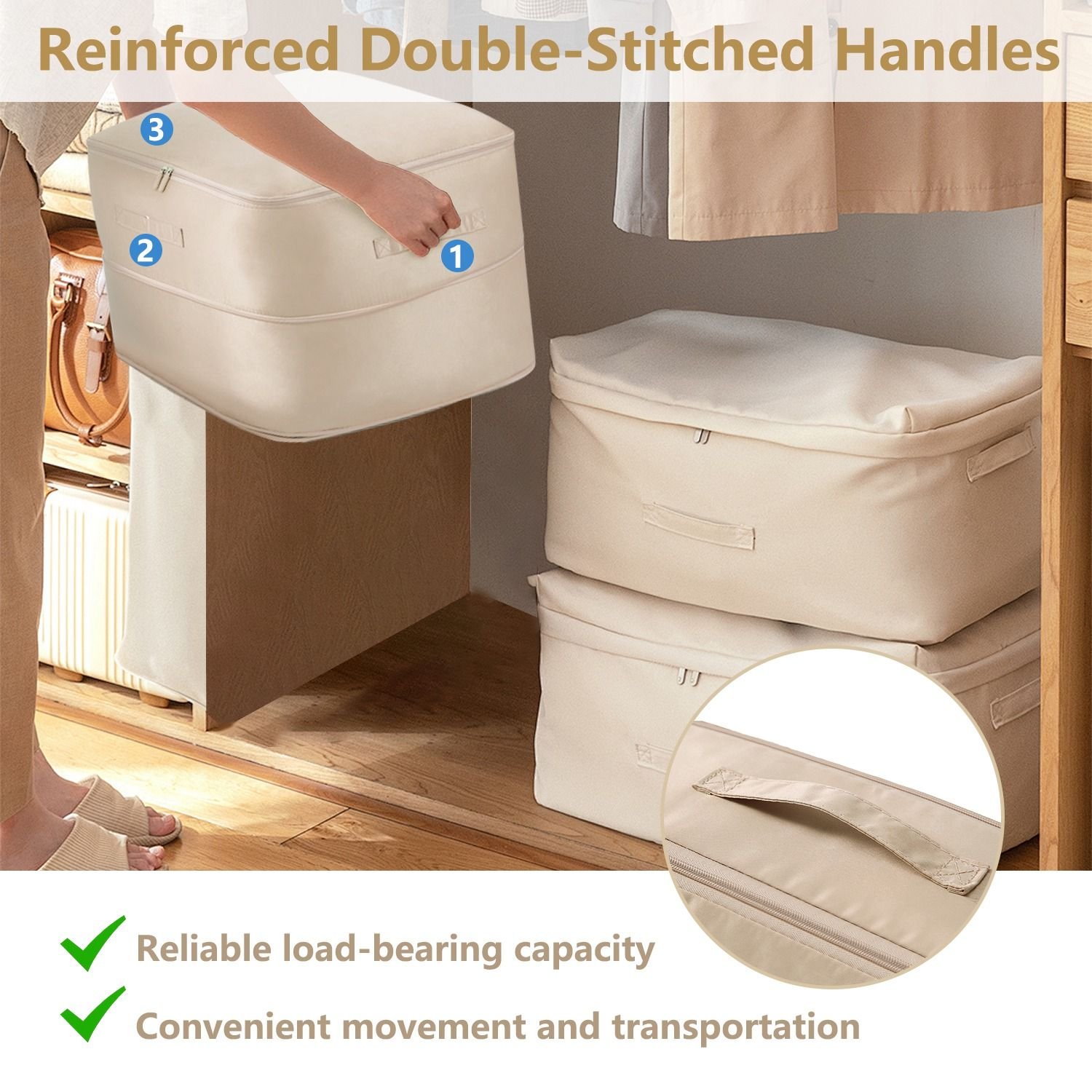 *Dual-Zippers & Strong Handles*:Reinforced double-stitched handles ensure reliable load-bearing capacity and excellent durability when transporting or carrying the duvet storage organizer. Additionally,dual-zippered design makes it easy and quick to fetch and organize clothes and blankets.